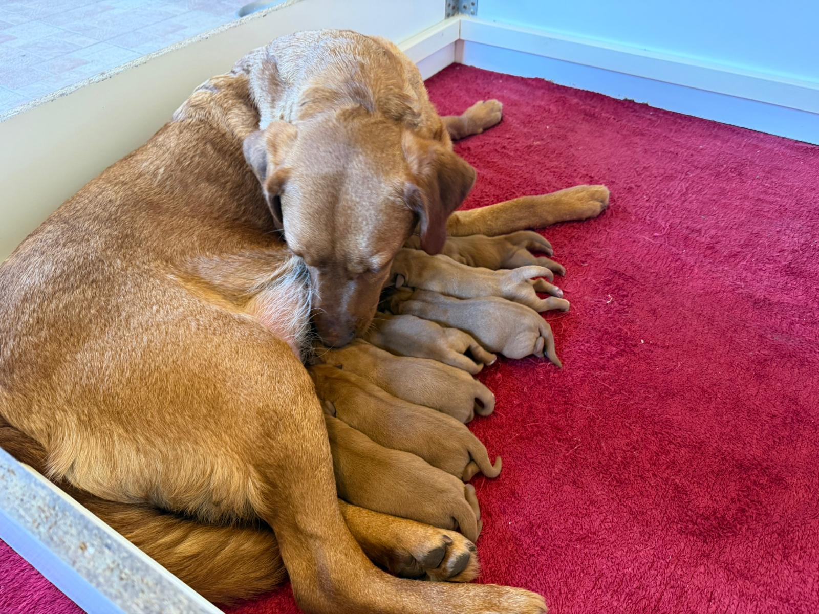 Chaya hat am 7.3.2026 einen wunderschönen Wurf von Ange in dark foxred geworfen. Mama und den Kleinen geht es bestens.